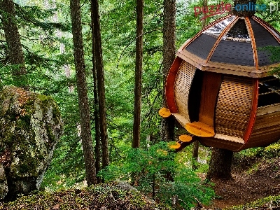 Domek, Drzewa, Drzewie, Las, Lato, Na