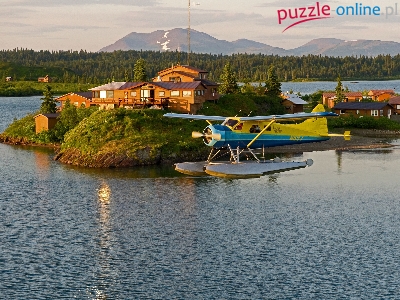 Puzzle Domki, Wyspa, Jezioro, Samolot