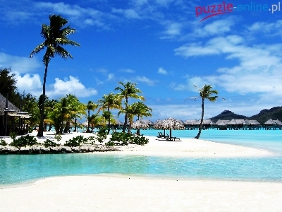 Domki, Bora Bora, Morze, Plaża, Palmy