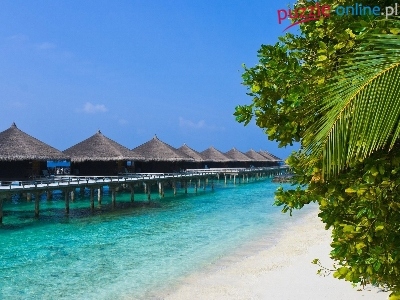 Puzzle Domki, Morze, Plaża, Palmy