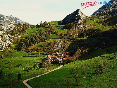 Puzzle Domy, Góry, Łąki, Hiszpania