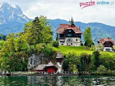 Puzzle Góry, Domy, Jezioro