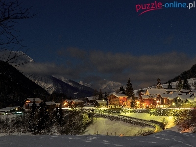 Puzzle Domy, Szwajcaria, Góry, Światła