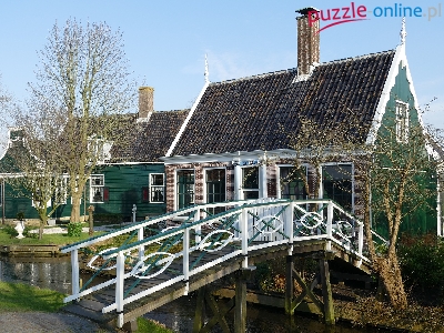 Mostek, Zaandam, Holandia, Kanał, Skansen Zaanse Schans, Domy