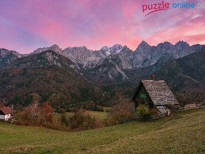Domy, Góry, Drzewa, Słowenia, Las, Alpy Julijskie, Kranjska Gora