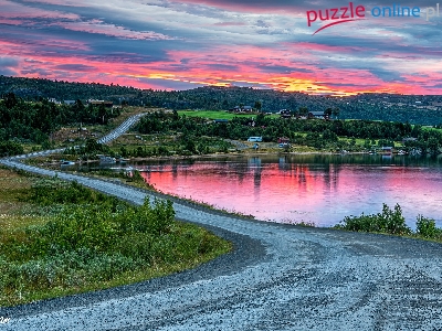 Kolorowe, Niebo, Łąki, Góry, Jezioro, Lasy, Droga, Domy
