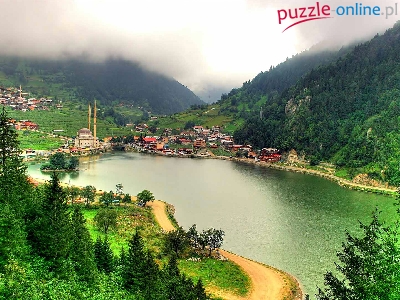 Góry, Wieś Uzungöl, Meczet, Turcja, Jezioro Uzungöl, Domy