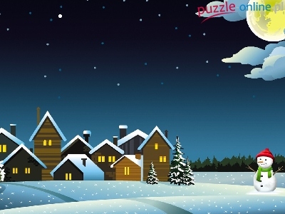 Puzzle Domy, Zima, Noc, Bałwanek