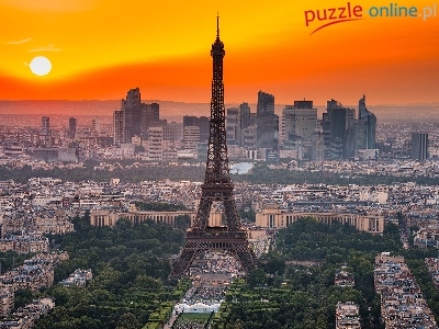 Wieża Eiffla, Paryż, Francja, Miasto, Zachód słońca, Domy