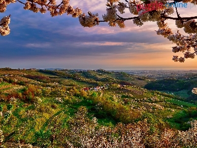 Domy, Wiosna, Farmy, Pola, Drzewo