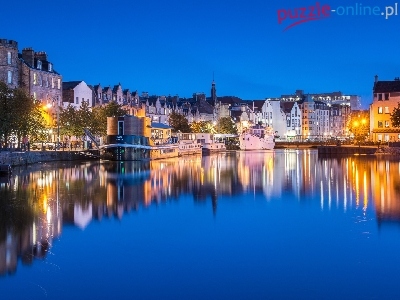 Dzielnica Leith, Edynburg, Zmierzch, Szkocja, Zatoka Firth of Forth, Domy
