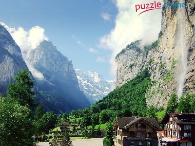 Puzzle Domy, Lauterbrunnen, Szwajcaria, Drzewa