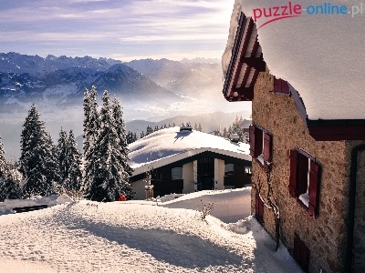 Puzzle Zima, Domy, Góry