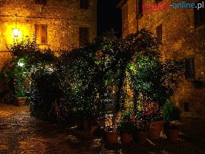 Toskania, Donice, Ogródek, Ulica, Kawiarenka, Włochy, Domy, Rośliny