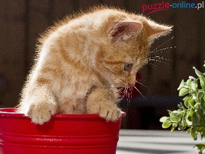 Puzzle Doniczka, Kot, Czerwona, Kwiatek