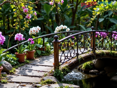 Puzzle Storczyki, Park, Mostek, Doniczki