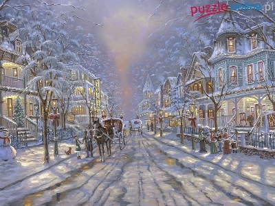 Puzzle Dorożka, Zima, Śnieg, Domki