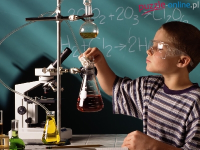 Puzzle Doświadczenia, Chłopiec, Chemia, Tablica