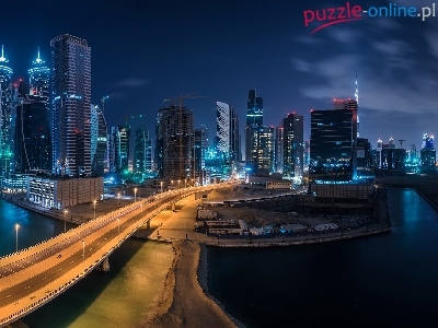 Drapacze, Droga, Dubaj, Noc, Chmur