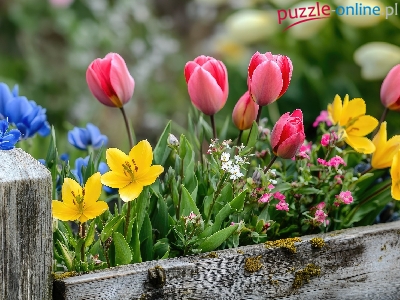 Skrzynka, Kwiaty, Kolorowe, Drewniana