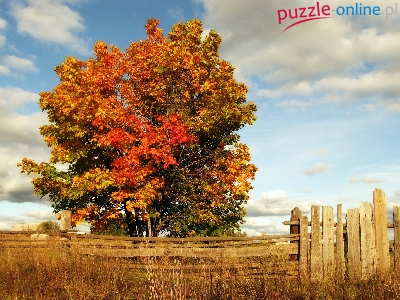 Puzzle Drewniany, Jesień, Drzewo, Płot