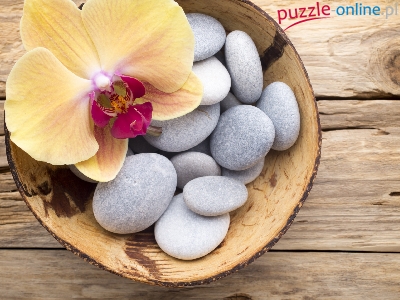 Puzzle Storczyk, Kamienie, Kwiat, Drewno