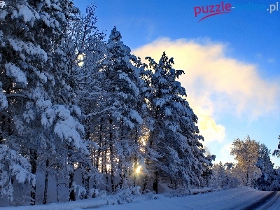 Puzzle Droga, Drzewa, Chmury, Zima