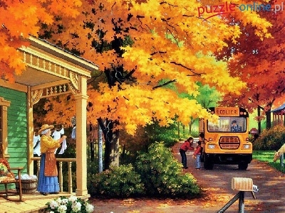 Puzzle Droga, Jesień, Domek, Obraz