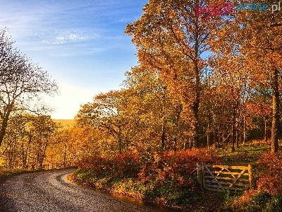 Puzzle Droga, Jesień, Drzewa, Płotek