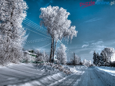 Puzzle Śnieg, Drzewa, Droga, Zima