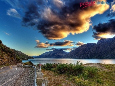 Puzzle Droga, Rzeka, Góry, Chmury