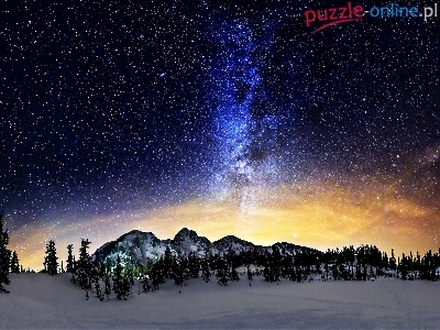 Puzzle Droga Mleczna, Zima, Góry, Gwiazdy