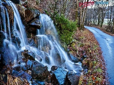 Droga, Wodospad, Kamienie, Drzewa