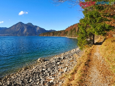 Jesień, Bawaria, Las, Drzewa, Kamienie, Góry, Niemcy, Jezioro, Droga