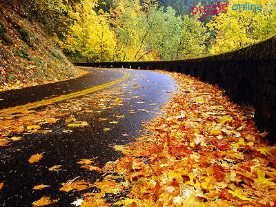 Puzzle Liście, Droga, Jesień
