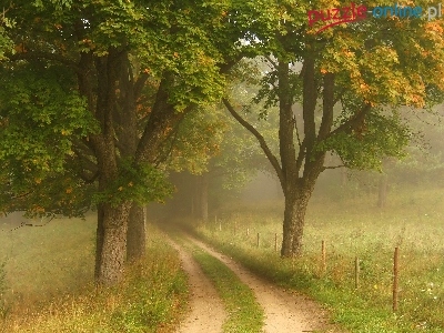 Puzzle Droga, Drzewa, Mgła, Polna