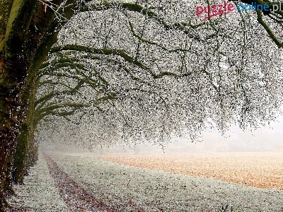 Puzzle Ośnieżone, Droga, Drzewa