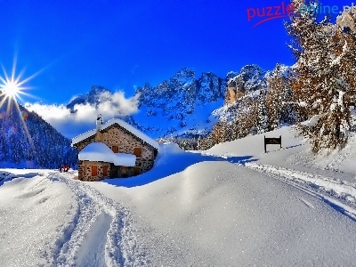 Puzzle Droga, Dom, Zima, Promienie Slońca