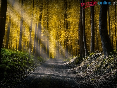Puzzle Droga, Las, Drzewa, Przebijające światło