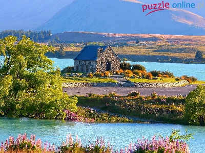 Puzzle Droga, Góry, Rzeka, Kaplica