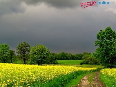 Droga, Chmury, Pole, Rzepak, Ciemne