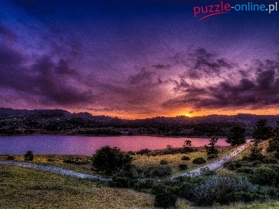 Droga, Lasy, Zachód, Słońca, Jezioro