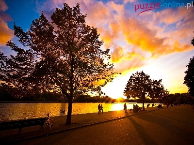 Puzzle Droga, Zachód, Słońca, Rzeka