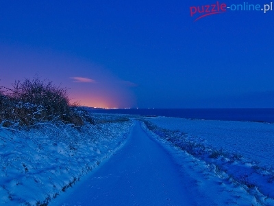 Droga, Zima, Zachód, Słońca, Śnieg