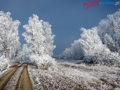 Droga, Drzewa, Zima, Szadź, Oszronione