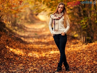 Droga, Jesień, Dziewczyna, Szalik, Liście