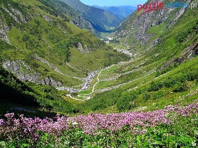 Droga, Kwiaty, Góry, Wąwóz, Łąki