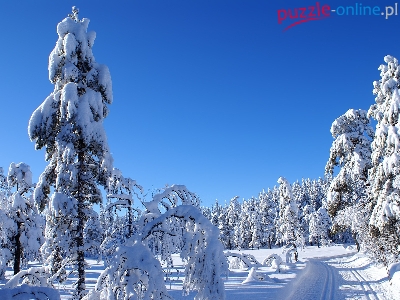 Puzzle Droga, Ośnieżone, Świerki, Śnieg