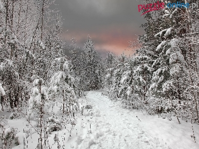 Puzzle Åšnieg, Zima, Droga, Drzewa