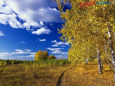 Dróżka, Jesień, Brzozy, Chmury
